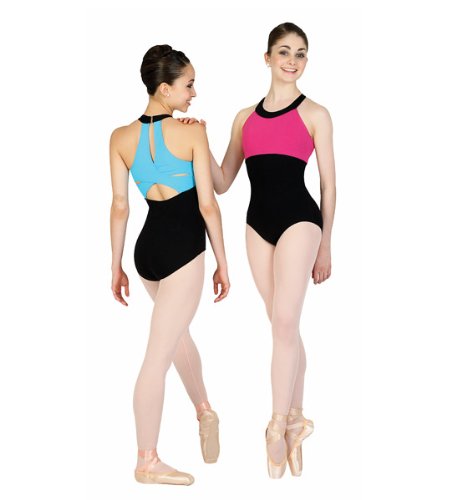 Natalie's tank leotard features a basic front and a clover strap back. Other features include a ballet cut leg line and shelf lining. Hand wash in cold water, hang dry.