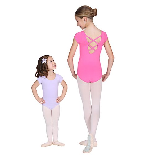 Natalie's short sleeve leotard with mid back and trestle straps.