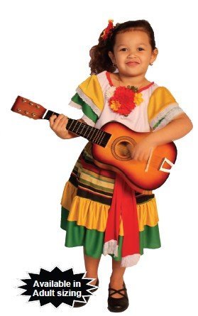 It's More Than a Costume! Our Product Line consists of beautiful Costumes that are Extremely Realistic Looking, Uniform Quality, Very Low Priced for Pretend Play for all year round AND For Halloween Complete sets with all Accessories included in a beautiful Attractive Durable package. Mexican Dancer costume includes: dress in girl's size large.